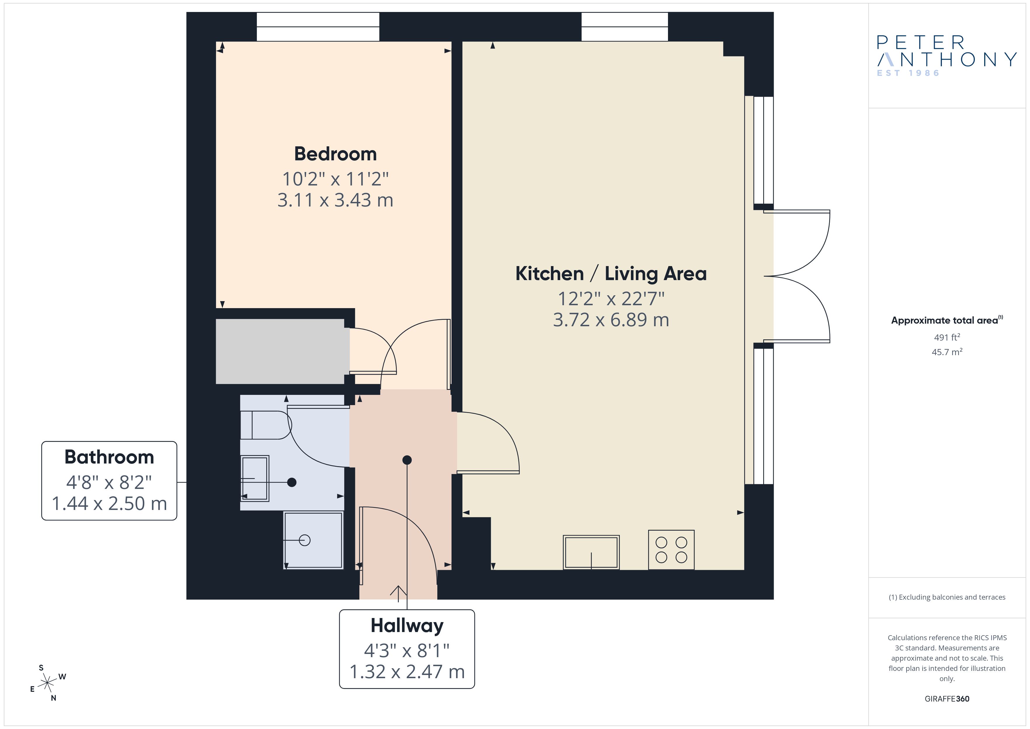 The property briefly comprises of entrance hall, open plan living room/kitchen with fully integrated modern kitchen, double bedroom, bathroom and a balcony. There is also an underground carpark with an allocated parking space.