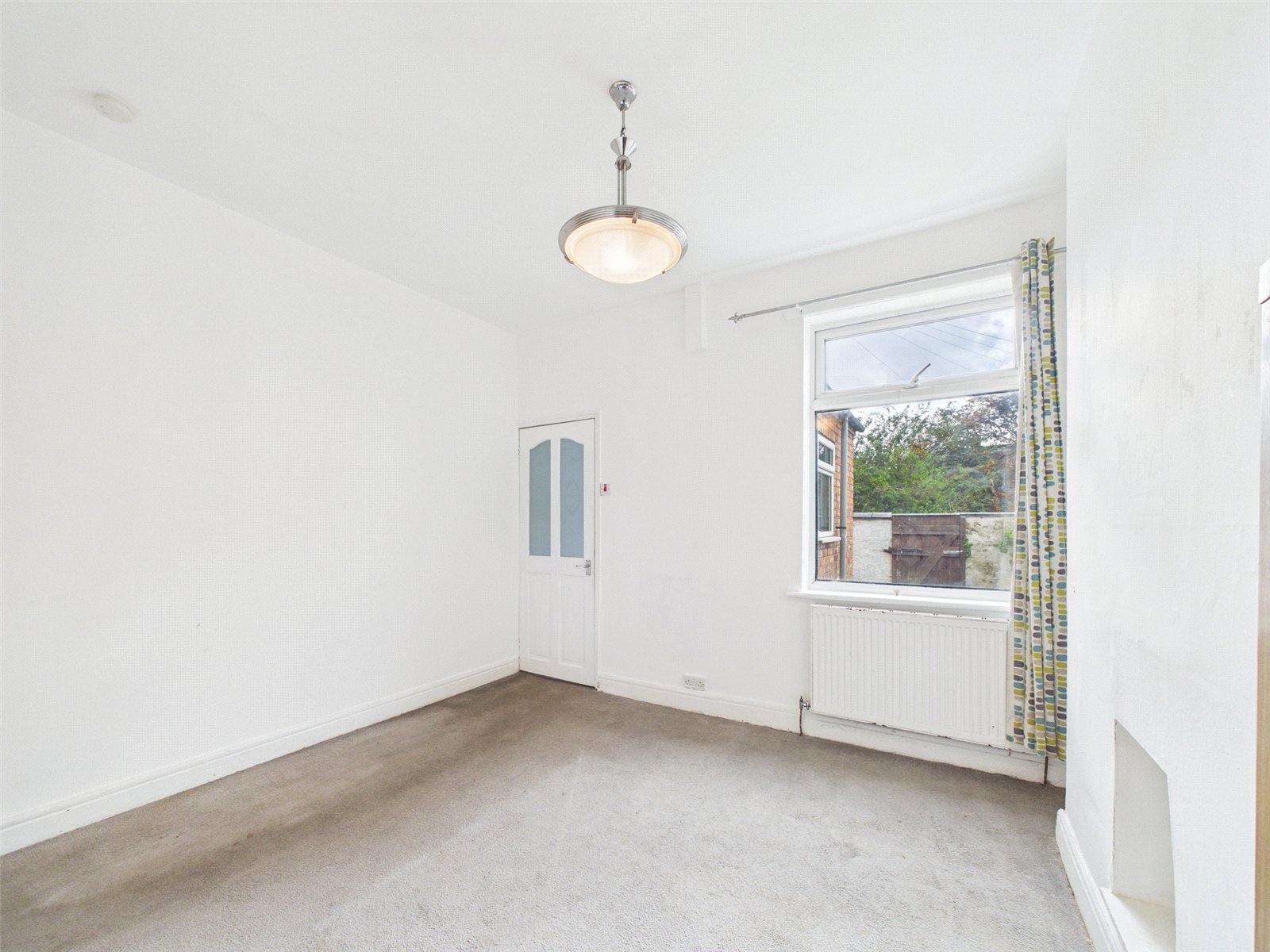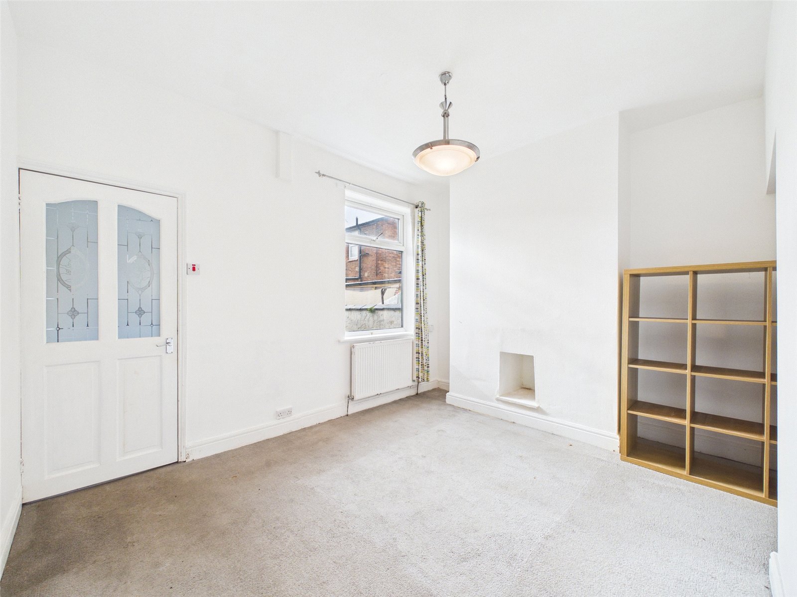 uPVC double glazed window to front elevation, carpet, radiator, ceiling light point and decorative cast iron fireplace.