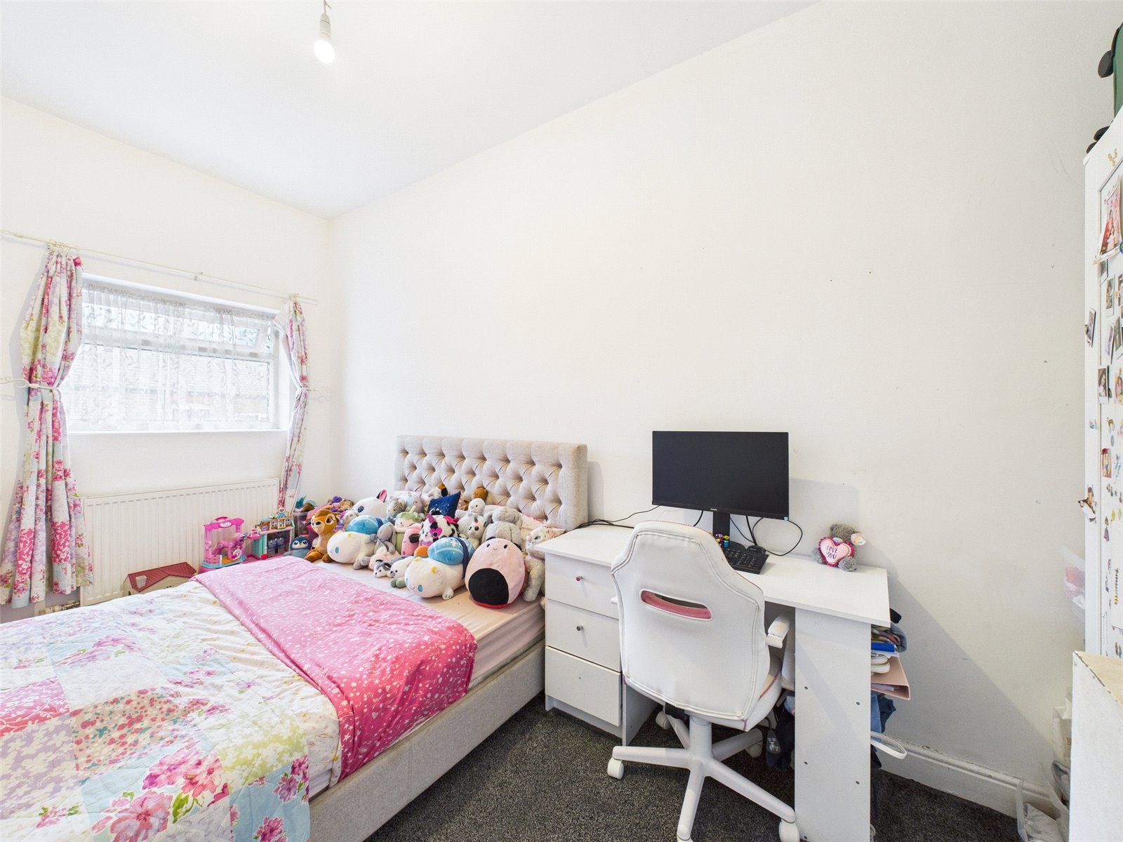 uPVC double glazed window to front elevation, carpet, radiator and ceiling light point.
