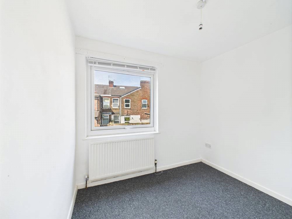 uPVC double glazed window to rear elevation, carpet, radiator and ceiling light point.