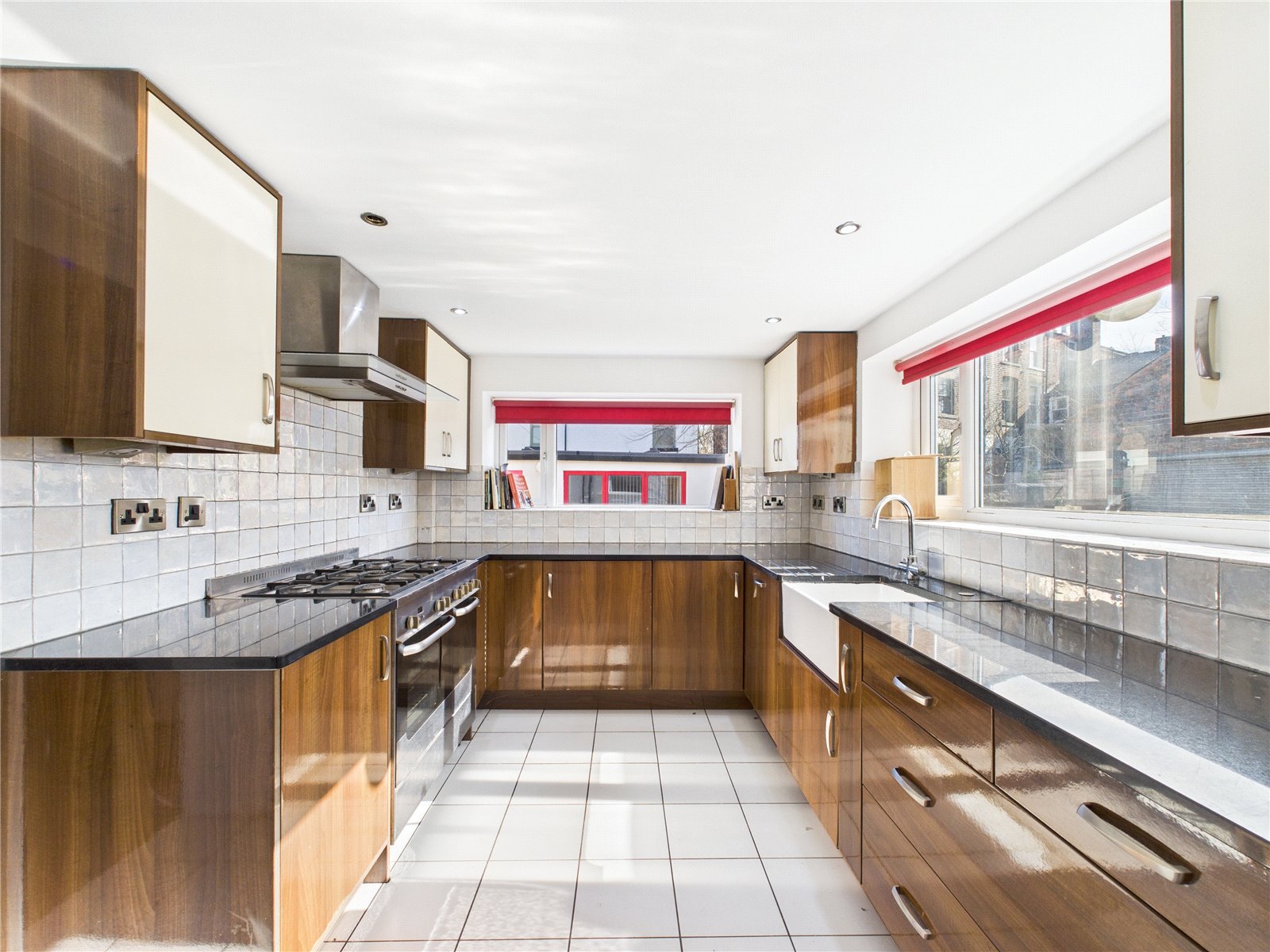 uPVC double glazed windows to side and rear elevations, tiled flooring, recessed ceiling spot lights, radiator, a range of base and wall units with granite work-surface and tiled splash back, Belfast sink with mixer tap, range style cooker, wall mounted extractor hood and integrated dishwasher.