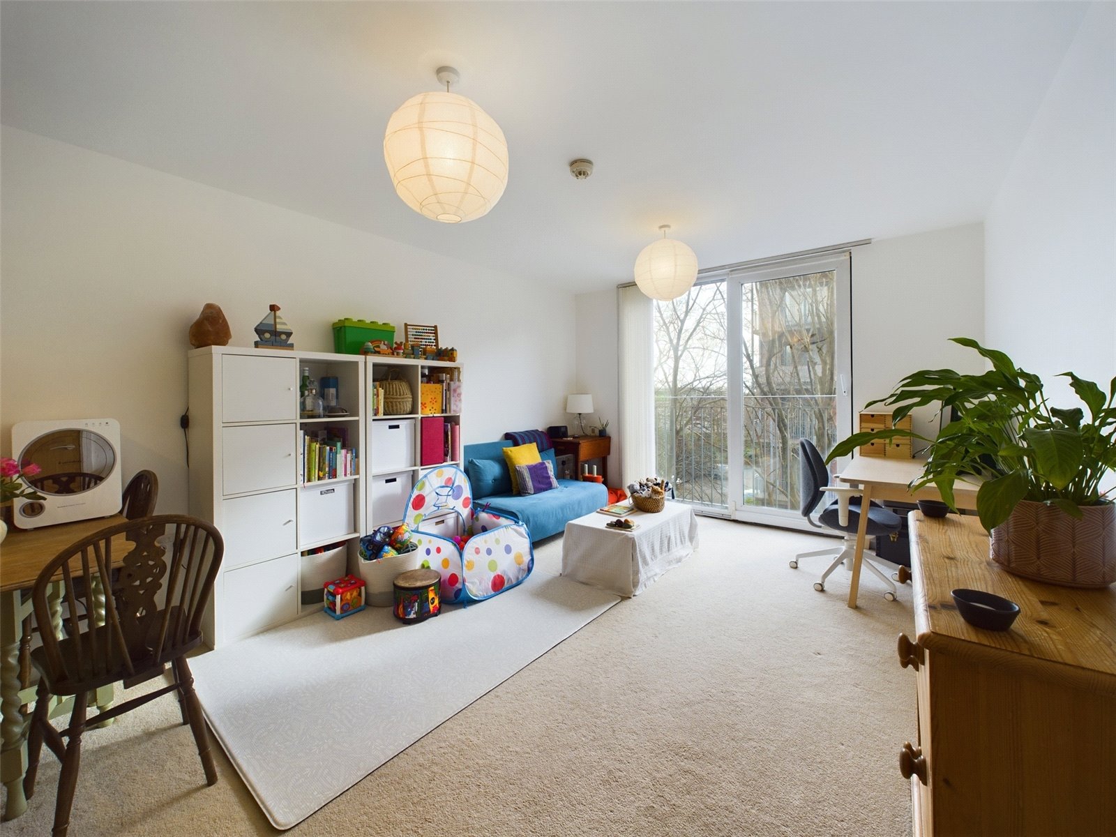 Double glazed patio style door leading to Juliette balcony, carpet, electric heater and ceiling light point.